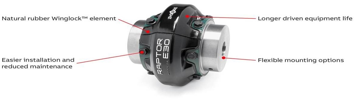 Компанія Dodge у конструкції муфти Raptor використала запатентований роздвоєний елемент з натурального каучуку Raptor який є дуже простий у монтажі, та продовжує термін експлуатації вузла. Ця муфта ідеально підходить для модернізації вузлів із схожими муфтами, оскільки із застосуванням низки інноваційних вона в кілька разів перевершує схожі товари конкурентів. Муфта, Raptor має інноваційну конструкцію елементів WingLockTM, яка пропонує простіший монтаж і зменшує вартість обслуговування у широкому діапазоні нових та існуючих застосувань.