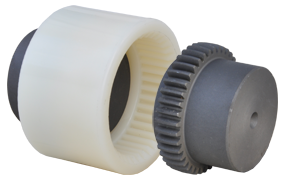 Nylon sleeve gear coupling (KTR) Муфта з поліамідним зовнішнім кільцем. Складається з двох внутрішніх полумуфт із зовнішніми зубцями, які пов'язані одним з'єднувальним кільцем з зубцями на внутрішній поверхні. Поєднання полумуфт із сталі і поліамідного з'єднувального кільця дозволяє знизити витрати на технічне обслуговування та використовувати муфту без мастила.