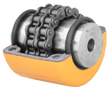 Ланцюгова муфта (SKF) Ланцюгова муфта призначена для конструкцій з великими крутними моментами, так як передає більш високий крутний моменти, ніж самі вали. Муфта являє собою фланці, з'єднані один з одним дворядним роликовим ланцюгом, що дозволяє сполучати вали з неспіввісністю до 2 °. Ланцюгові муфти вимагають регулярної змащення для забезпечення максимального терміну служби і надійності, особливо при високих частотах обертання.